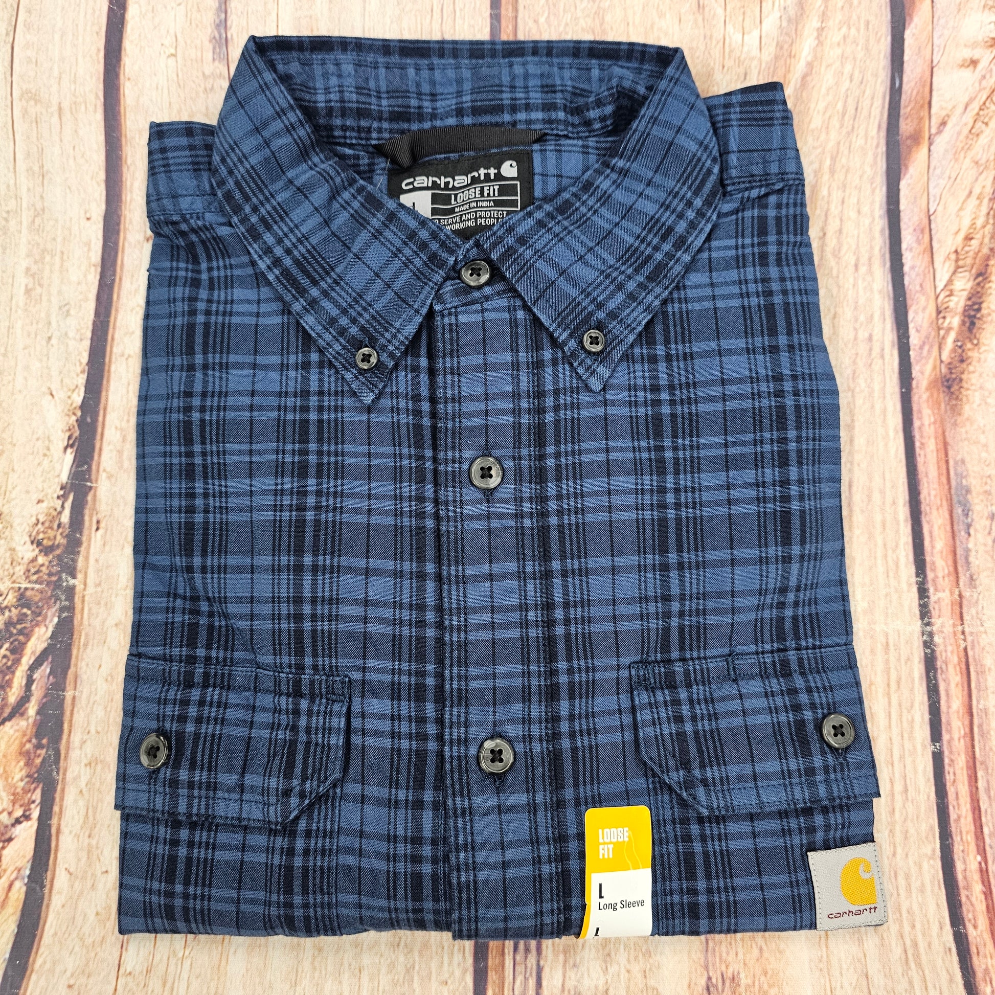 CARHARTT LOOSE FIT MIDWEIGHT CHAMBRAY LONG SLEEVE PLAID SHIRT 106355-DBL