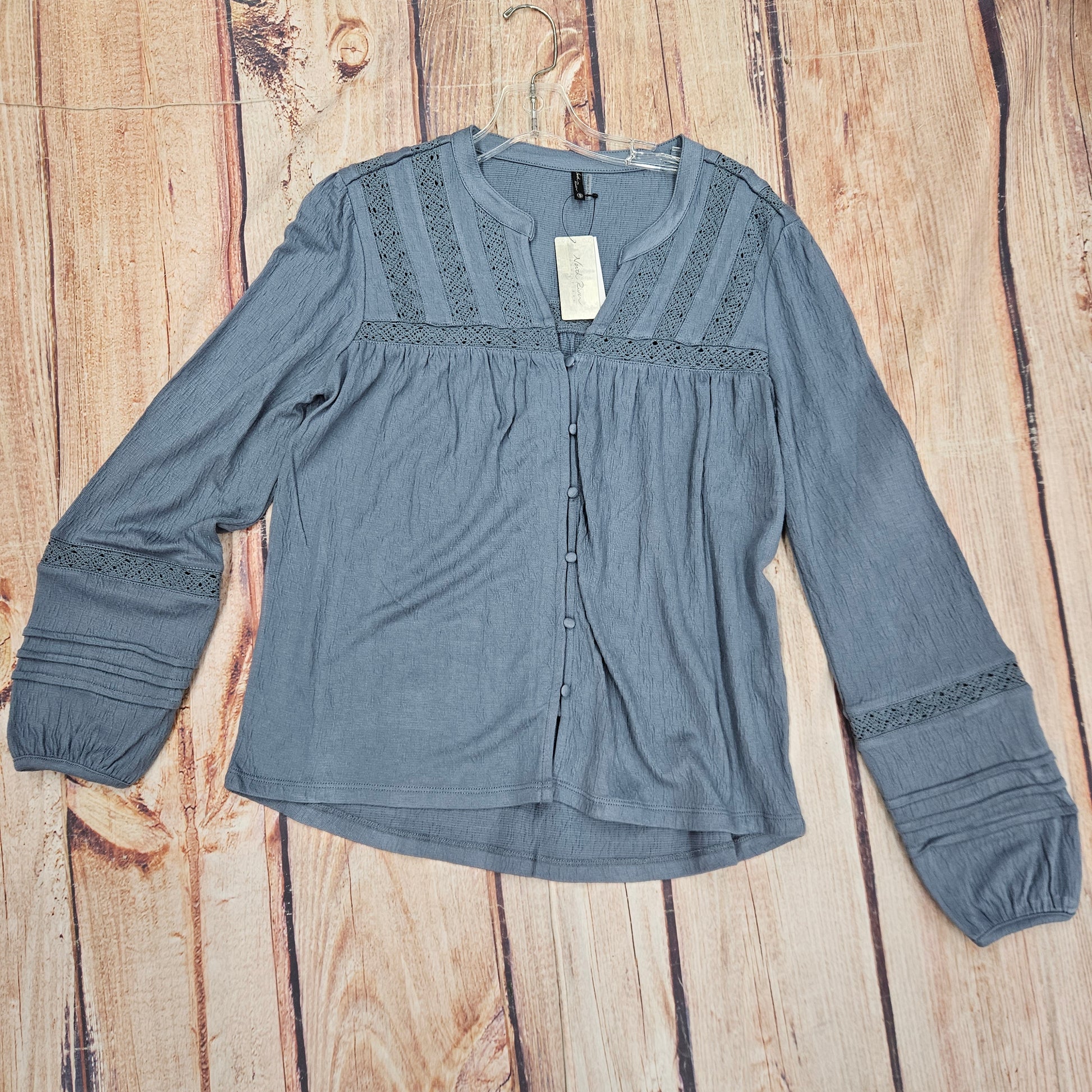 NORTH RIVER LS CROCHET TOP BLUE NRL2638