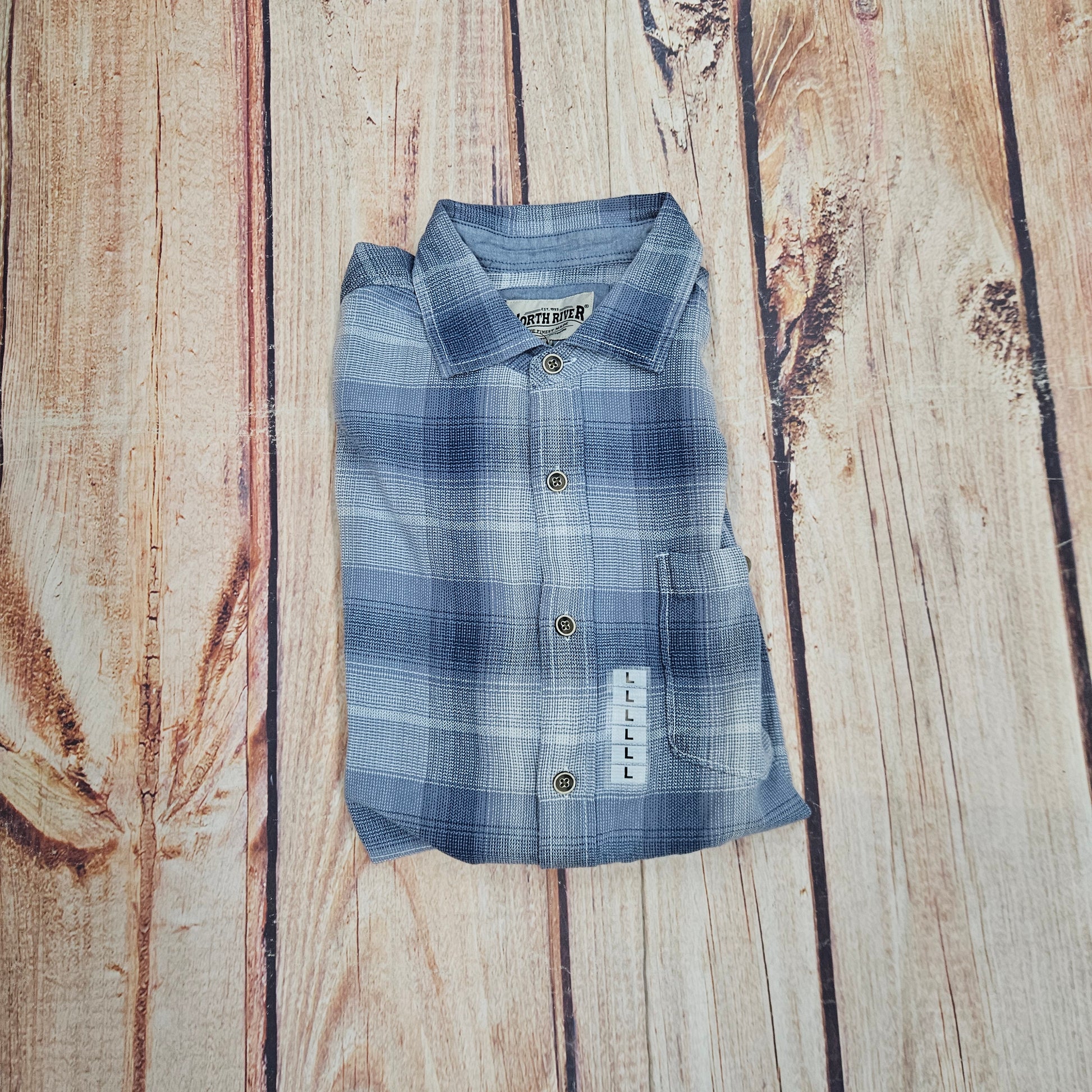 NORTH RIVER Y/D BLUE PLAID SHIRT BUTTON DOWN MEN NRM5342