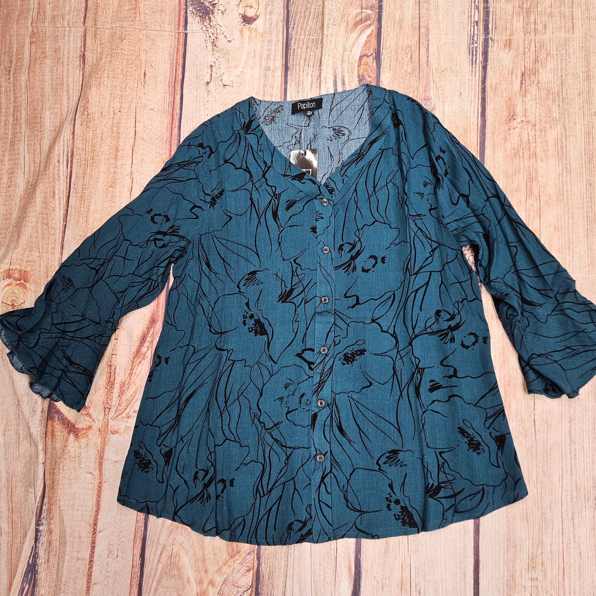 PAPILLON FLORAL CRINKLE BUTTON TOP PT19003